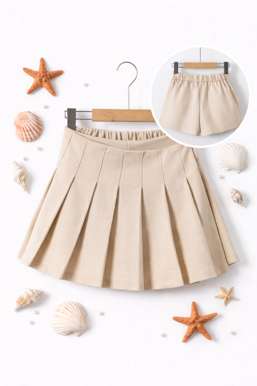Met deze beige pleated skort geef je de garderobe van je meisje een upgrade met een trendy en praktische keuze. Bestel vandaag nog en laat haar stralen in deze stijlvolle, veelzijdige skort!